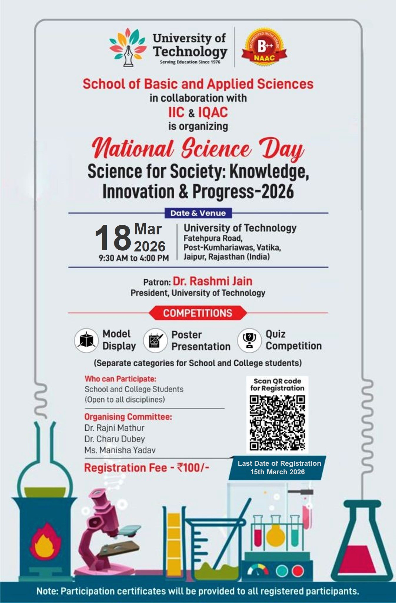 Science students of 11/12th class of schools in the vicinity would be invited to participate in the competitions as well as visit the University.